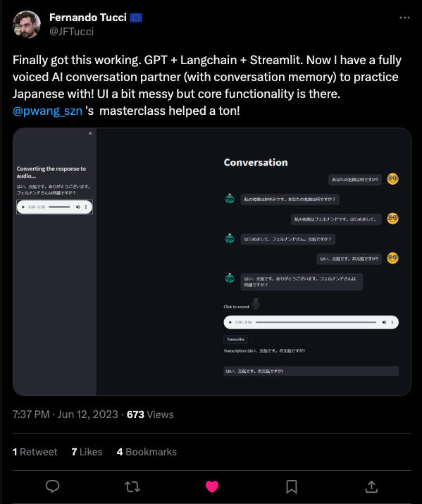 Launched a language teacher chatbot after finishing BuildFast Academy