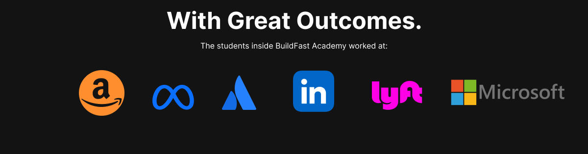 Form lifelong friendships with like-minded builders.Building on the internet can feel lonely, but it doesn't have to be.The internet has made it easy to find others just like you. And inside BuildFast Academy, you'll learn alongside a group of people from every time zone, continent, background, and profession.And the best part? Every single one of them has the same goal as you:To finally start building.